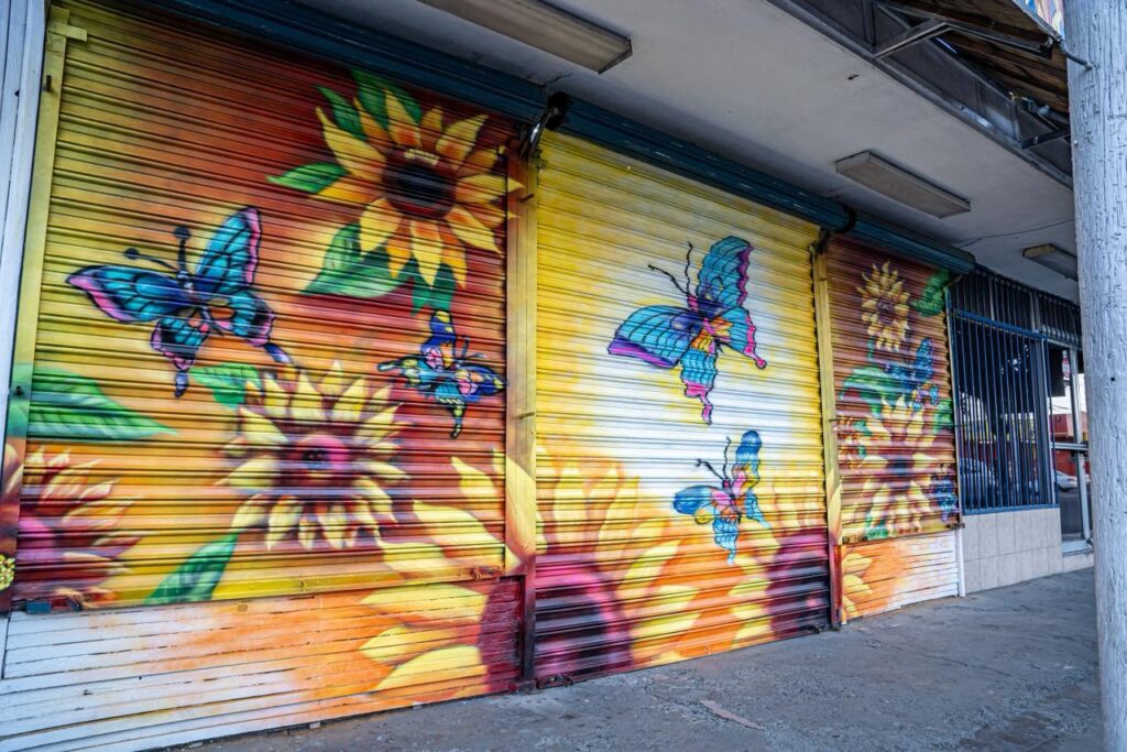 Entre los que destacan la participación de Flip y Asker Aesu, así como del artista local, Pablo Vega, quienes plasmaron en las cortinas metálicas de florerías, elementos que reflejan la identidad y esencia de la zona.