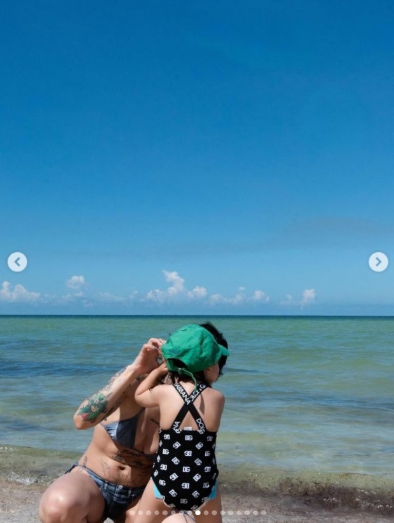 Además, Cazzu compartió imágenes de una breve escapada a la playa, donde madre e hija disfrutaron del sol y del mar. En otra postal, se les ve compartiendo una tarde en la alberca del hotel, con Inti usando un flotador verde y su madre sonriendo a su lado, reflejando la conexión y amor que las une.