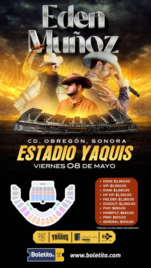La cuenta regresiva ha terminado. Este viernes 8 de mayo, el Estadio Yaquis se transformará en el epicentro de la emoción y la música regional con la esperada presentación en vivo de Edén Muñoz, uno de los artistas más queridos y versátiles del país.