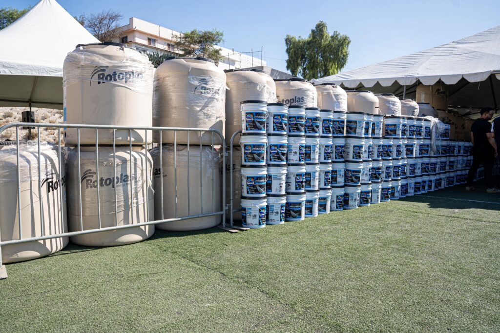 Durante el evento, el primer edil hizo entrega de 200 apoyos económicos, así como 90 tinacos, 184 paquetes de impermeabilización y un concentrador de oxígeno, con el objetivo de mejorar las condiciones de vida de las y los beneficiarios, particularmente en materia de vivienda y salud.