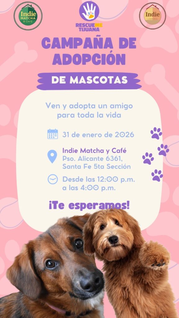En colaboración con Rescue Me Tijuana e Indie Librería, el espacio acogerá una campaña de adopción de mascotas que invita a la comunidad a sumar un nuevo integrante a su familia.
